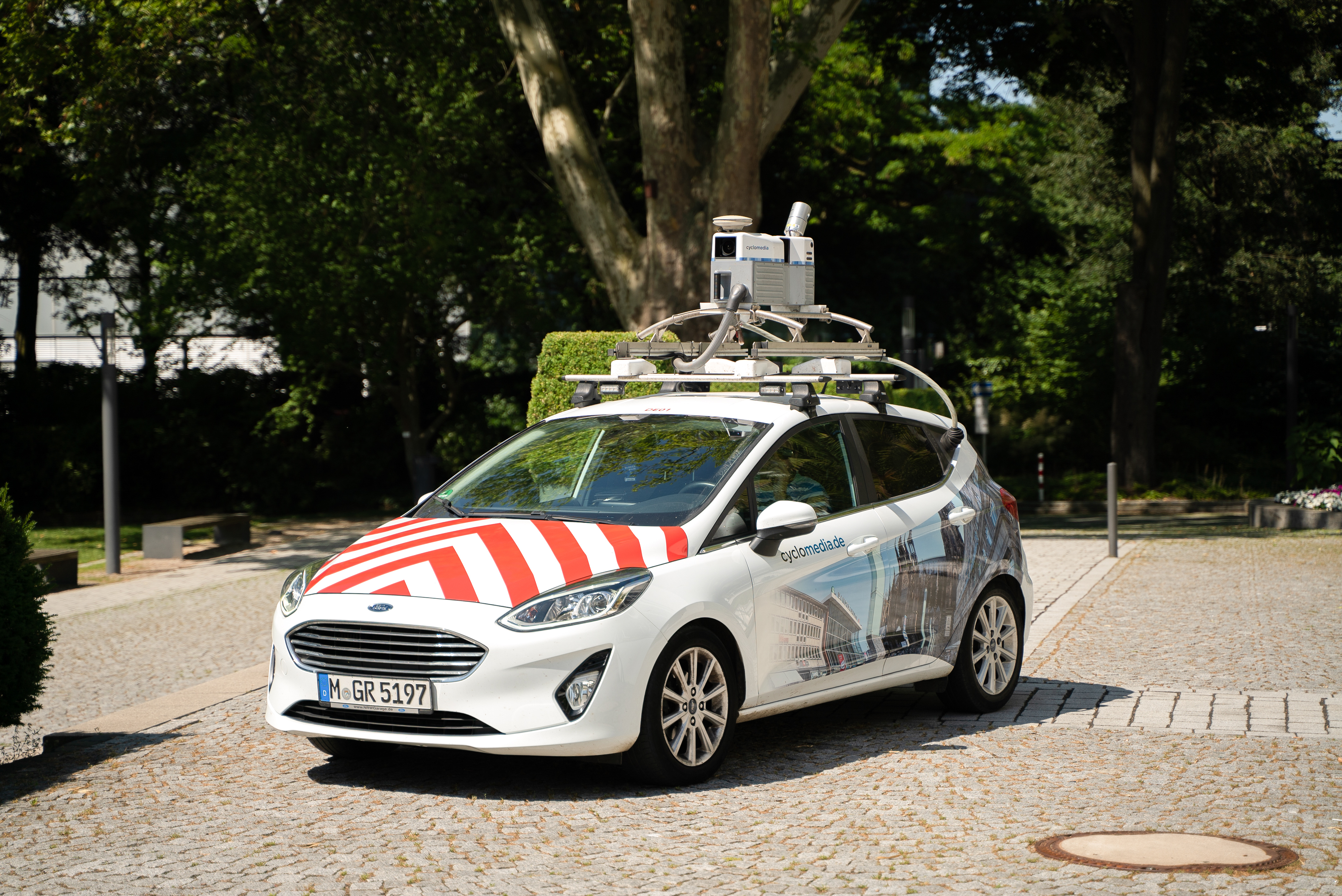 Die niederländische Firma Cyclomdedia hat mit einer 360°-Panoramakamera das öffentliche Straßennetz in Halstenbek abgefahren (siehe Foto des Aufnahmefahrzeugs).