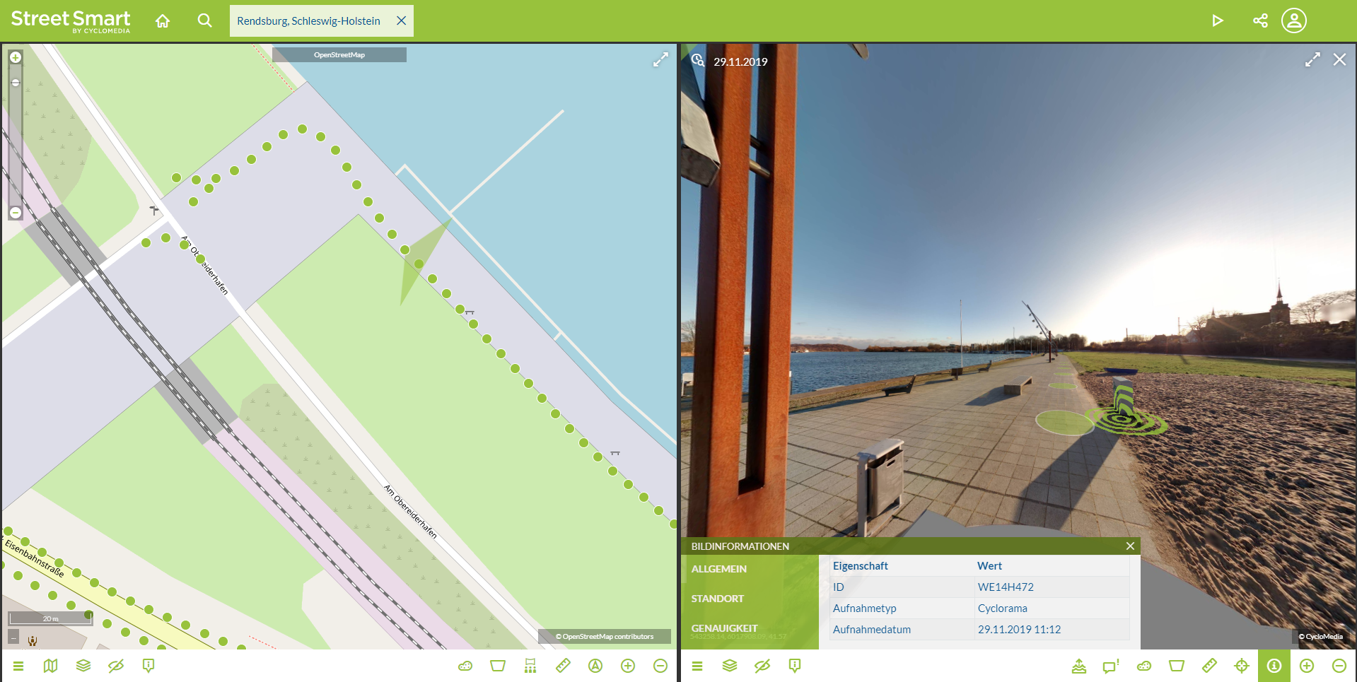 Die Speicherung der Daten erfolgt für die Dauer des Nutzungsvertrages (derzeit 12 Monate) mit Cyclomedia.